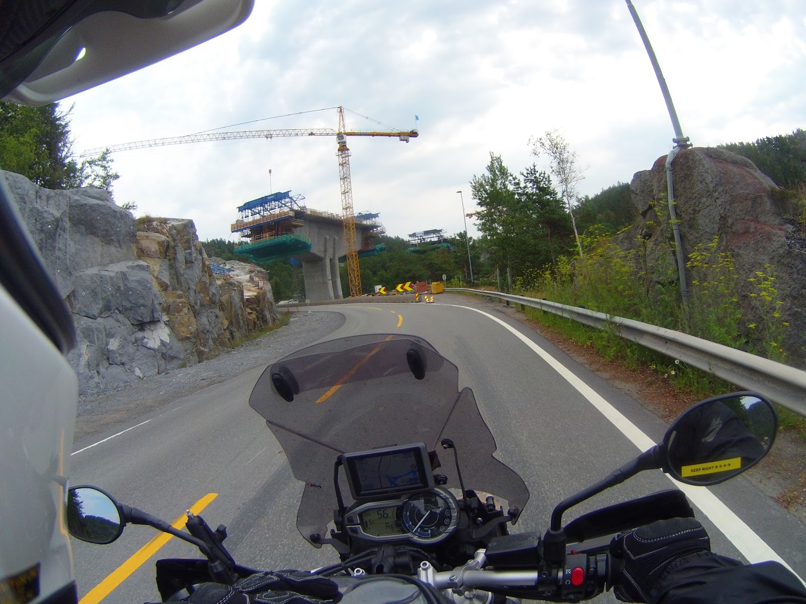 The road led us over a nice suspension bridge and straight into some heavy road works and construction. The main E18 is being upgraded into a two lane motorway. Huge bridges and tunnels are under construction. The smaller road that we were on was the supply route for all of this construction traffic. It was interesting to see how the bridges were being built though.